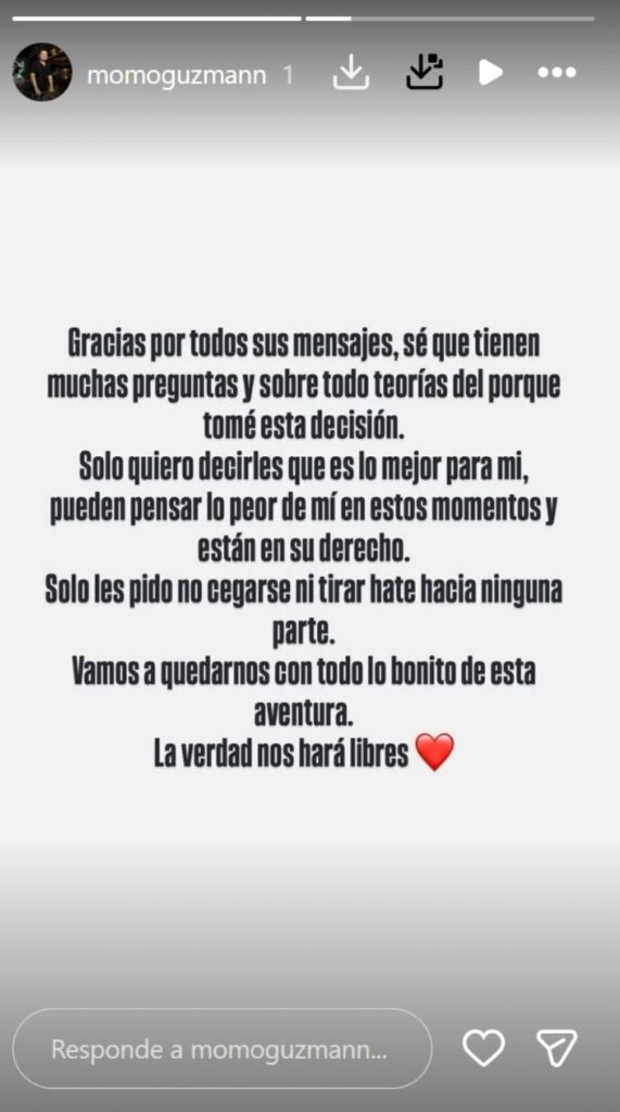 Pese a que no entró más en detalles, añadió que cerraba este ciclo después de varios años de entregar su corazón en este proyecto. Agregó que empezaría una nueva etapa e invitó a sus fans a seguir este proceso junto a él.