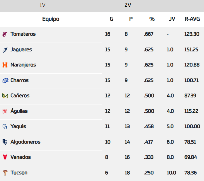 - Tomateros de Culiacán 8-0 Algodoneros de Guasave