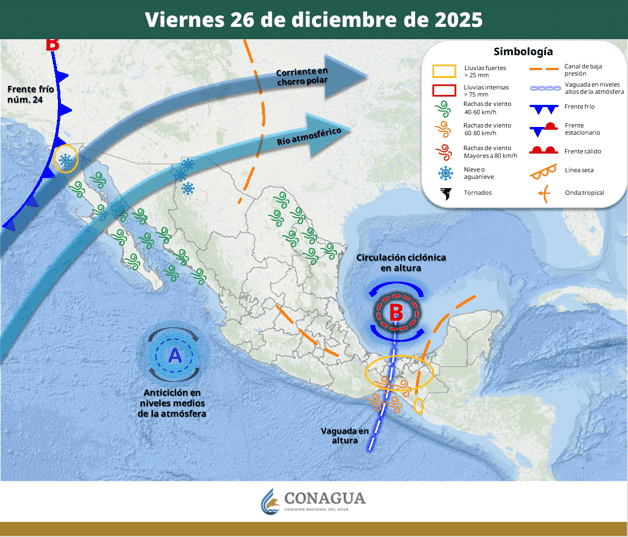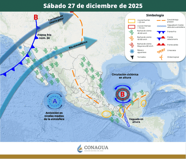 Mazatlán, Sinaloa (RI Noticias). – El último fin de semana de diciembre traerá un cambio notable en el clima de Sinaloa. De acuerdo con el Servicio Meteorológico Nacional, un nuevo frente frío en combinación con una vaguada polar se desplazará sobre el noroeste del país, ocasionando un descenso significativo de las temperaturas en la entidad a partir del viernes 26.