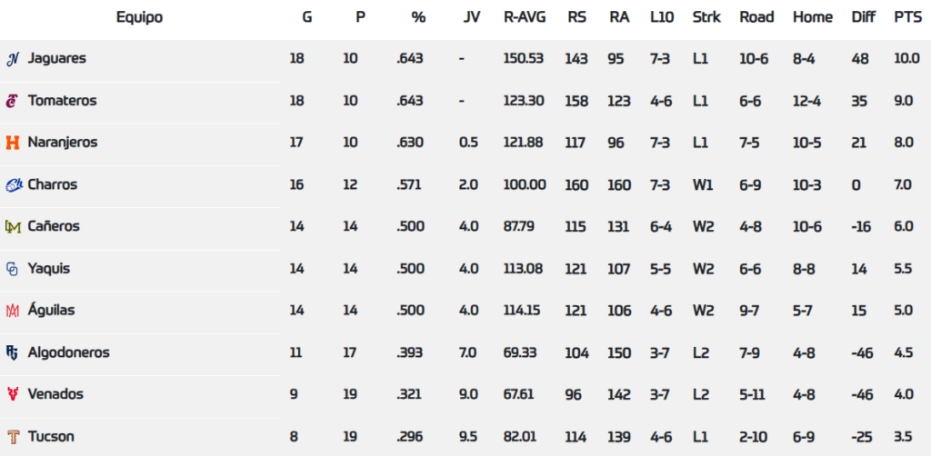 - Cañeros de Los Mochis 6-5 Jaguares de Nayarit