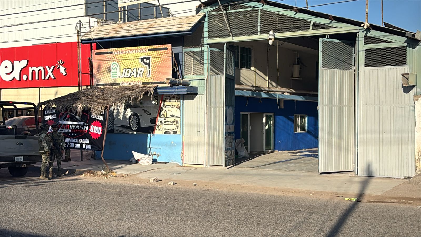 De acuerdo con la información recabada en el sitio, el ataque ocurrió en el cruce de la avenida Fray Marcos de Niza y la calle Pedro Tovar, donde se localiza una bodega que opera como llantera y servicio de lavado. Al arribar, las autoridades observaron múltiples impactos de bala en la fachada del inmueble, así como daños en varios cristales.
