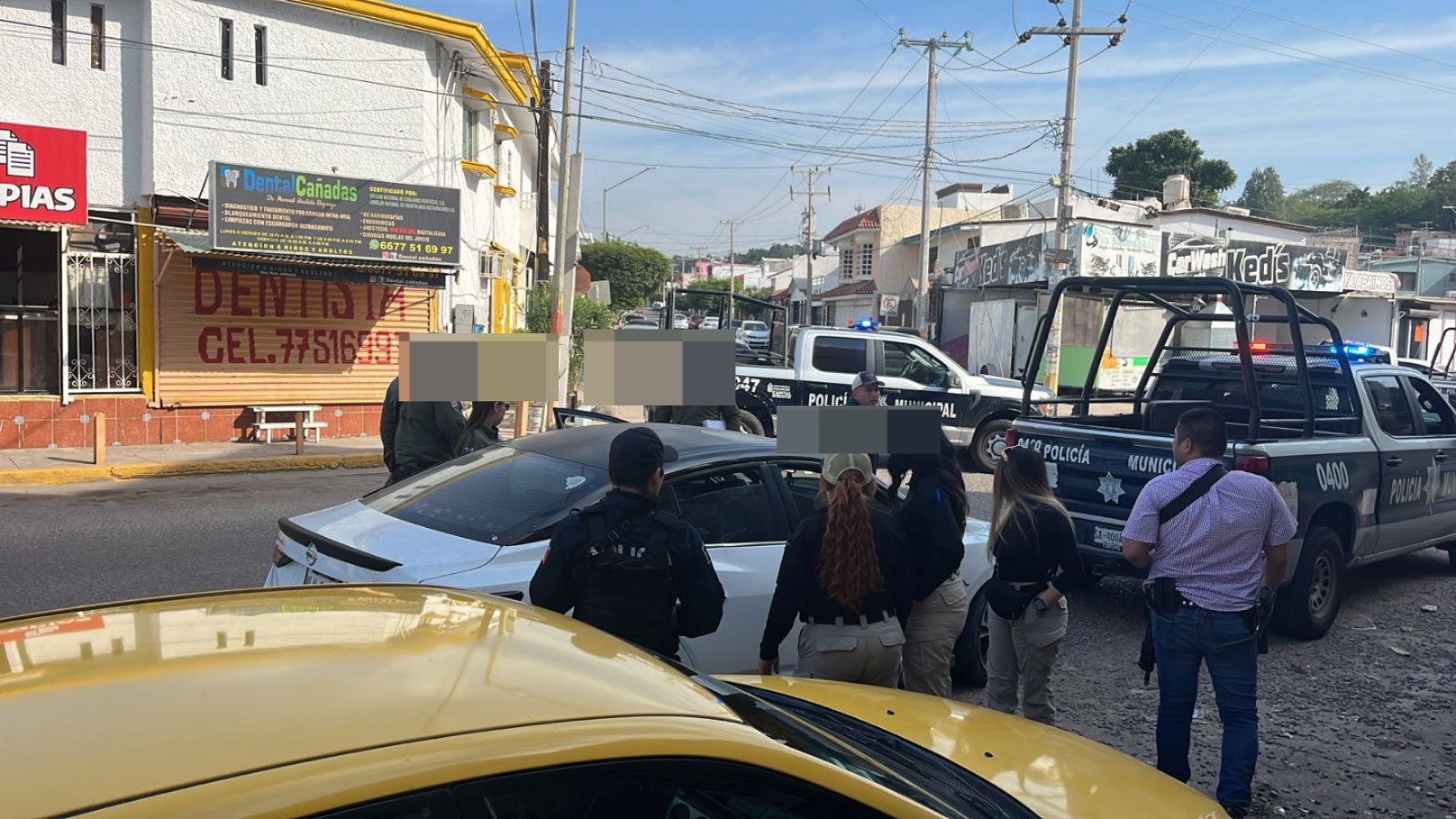 En el exterior del hospital, las autoridades localizaron el automóvil Nissan Sentra color blanco que presentaba varios impactos de bala en la carrocería y cristales, en el cual viajaban los lesionados por lo que fue asegurado.