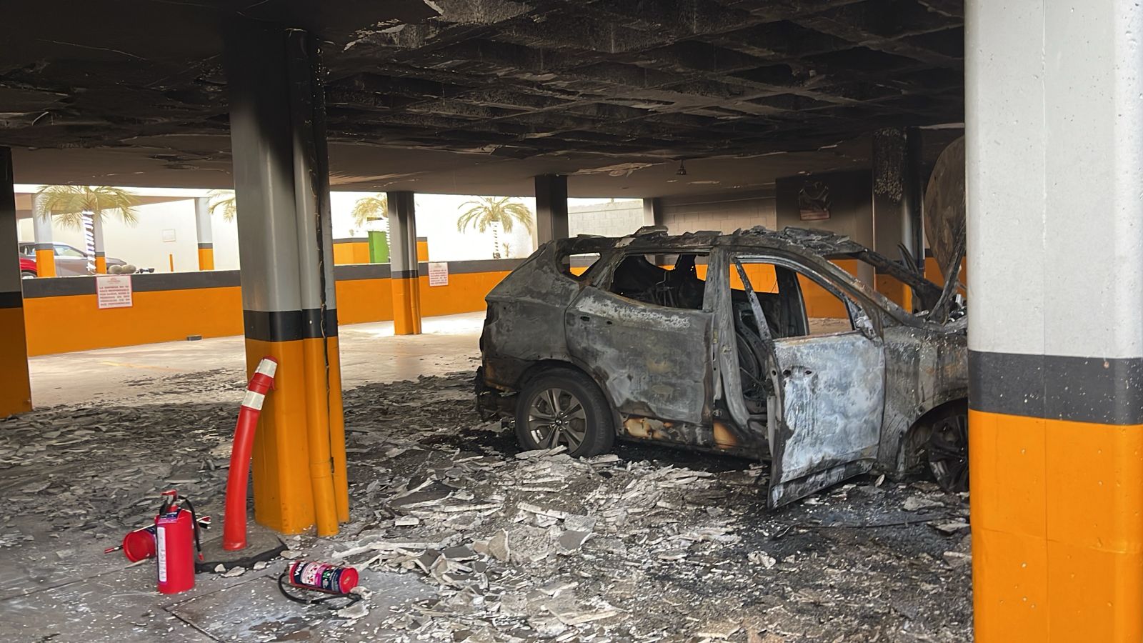 Elementos del Cuerpo de Bomberos lograron controlar el incendio, el cual también causó daños por calor a otro vehículo, al techo del estacionamiento y a paredes de algunas habitaciones. Autoridades confirmaron que el siniestro fue de origen mecánico.