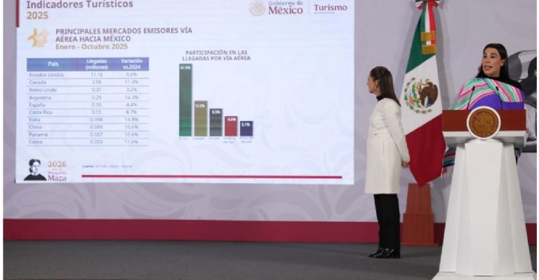 La secretaria de Turismo, Josefina Rodríguez Zamora, afirmó que, entre enero y octubre de 2025, el destino recibió 253 mil 309 cruceristas, con un total de 112 arribos de embarcaciones, lo que representó una recuperación constante del turismo marítimo y una derrama económica superior a los 637 millones de pesos, según datos oficiales del sector.