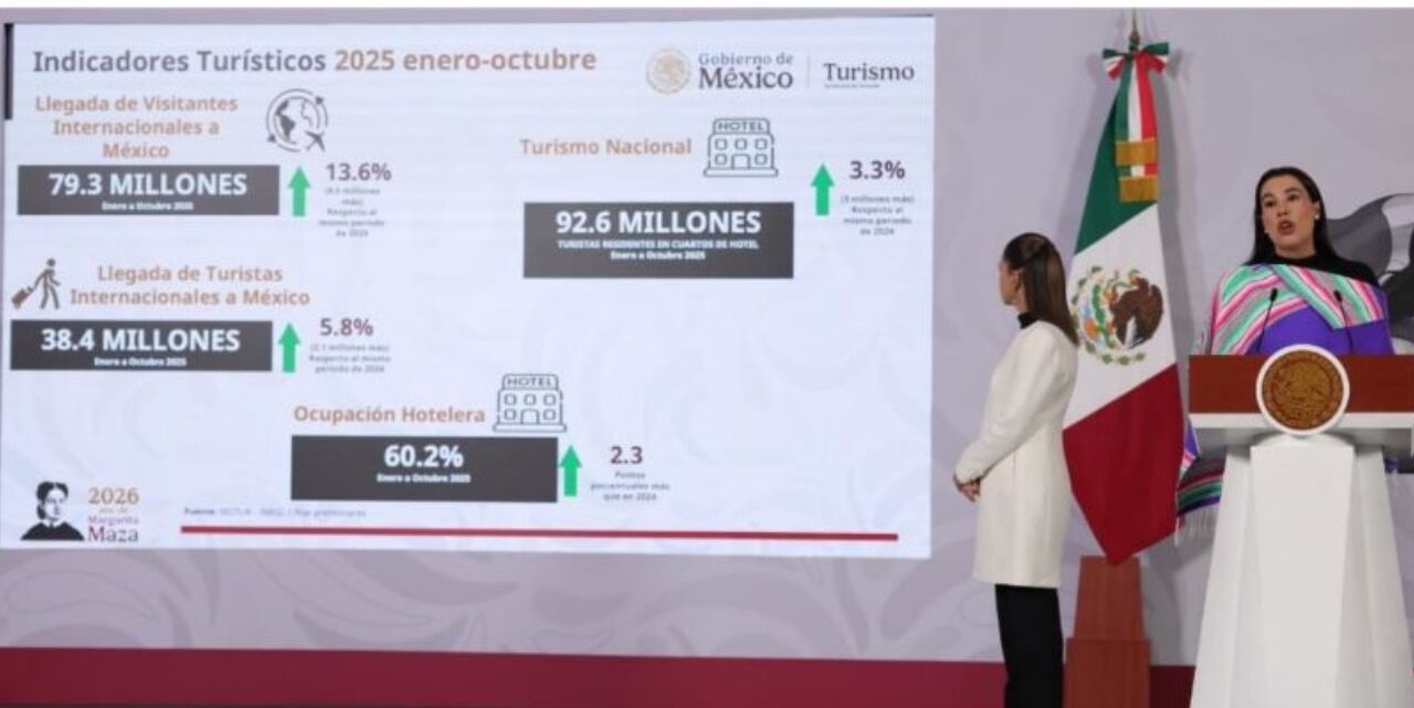 La secretaria de Turismo, Josefina Rodríguez Zamora, afirmó que, entre enero y octubre de 2025, el destino recibió 253 mil 309 cruceristas, con un total de 112 arribos de embarcaciones, lo que representó una recuperación constante del turismo marítimo y una derrama económica superior a los 637 millones de pesos, según datos oficiales del sector.