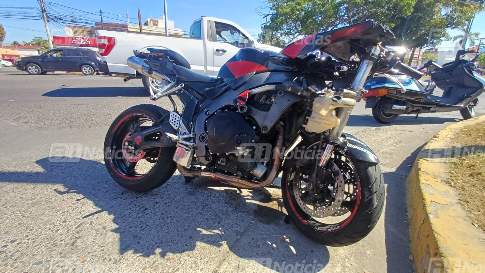 Mazatlán, Sinaloa (RI Noticias).- La imprudencia al manejar provocó un fuerte choque de una motocicleta contra un automóvil que presuntamente le cerró el paso en un importante crucero de la ciudad.