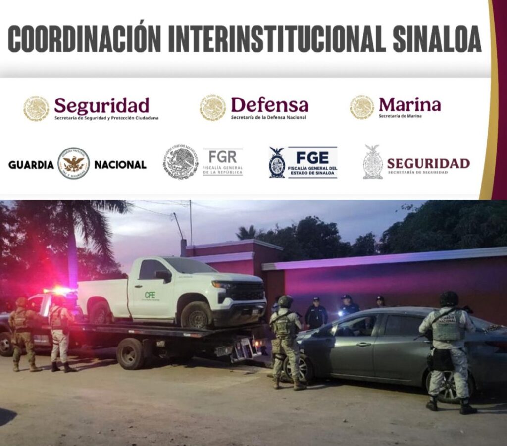 Culiacán, Sinaloa (RI Noticias). – Un fuerte operativo se registró en el ejido Comanito, en el municipio de Culiacán, donde autoridades federales y estatales llevaron a cabo una investigación que derivó en el aseguramiento de vehículos con reporte de robo y material balístico. La movilización llamó la atención de habitantes de la zona por la presencia de elementos armados resguardando el área.