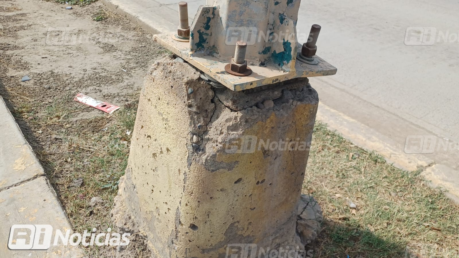 Mazatlán, Sin. (RI Noticias).- El deterioro evidente de los postes de luminarias en la intersección de la avenida Clouthier y la calle Mutualismo, en la colonia Lomas del Ébano, genera una preocupación entre transeúntes y trabajadores de la zona. La estructura de estas luminarias muestra daños críticos tras haber recibido múltiples impactos de vehículos en accidentes recientes. A pesar de la visibilidad del daño y del riesgo de caída, las autoridades correspondientes no han intervenido para asegurar la zona.