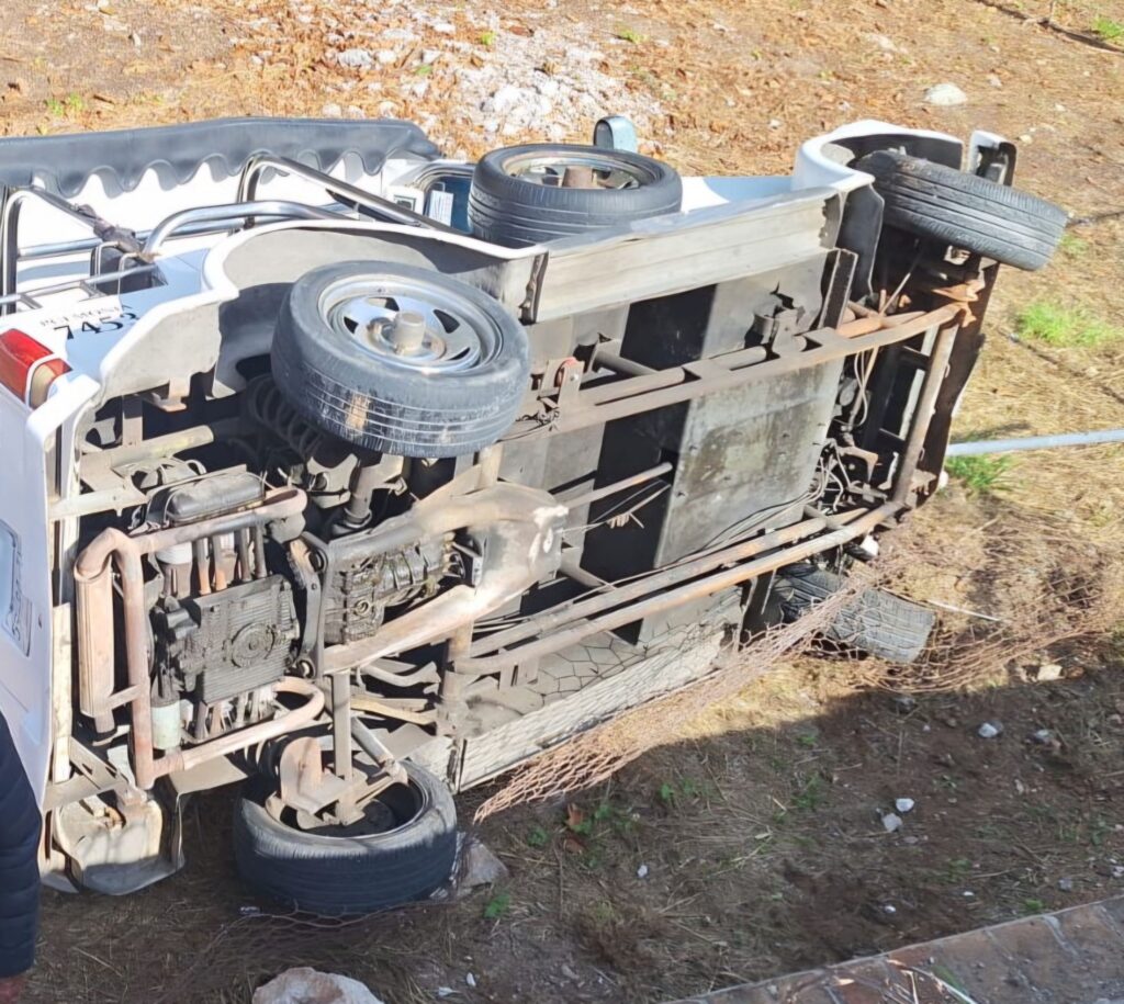 Mazatlán, Sinaloa (RI Noticias).- Tras sufrir una aparente falla en los frenos una pulmonía terminó volcada cuando circulaba por calles del Cerro de la Nevería.