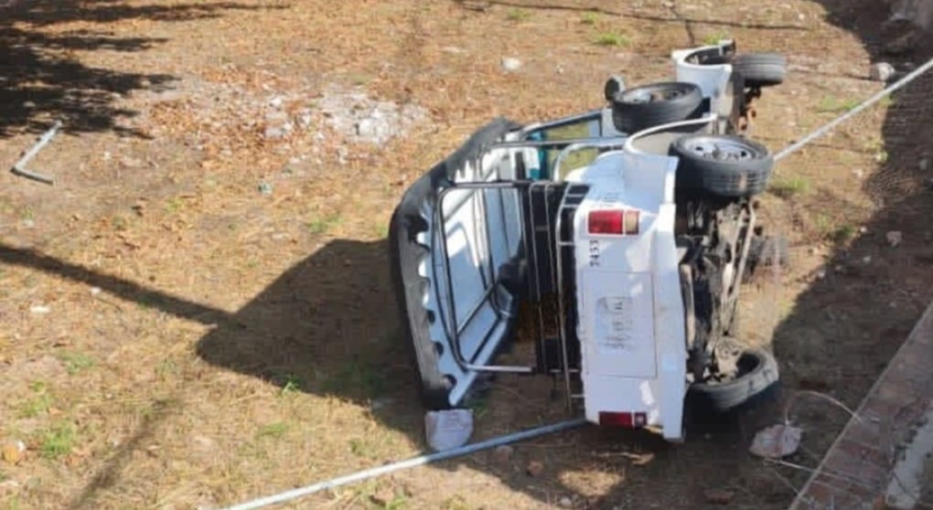 Los hechos ocurrieron esta mañana cuando el vehículo de alquiler descendía por la calle Puebla y tras una aparente falla en los frenos ocasionó que el conductor perdiera el control y derribara una malla ciclónica para caer en un desnivel de aproximadamente un metro.