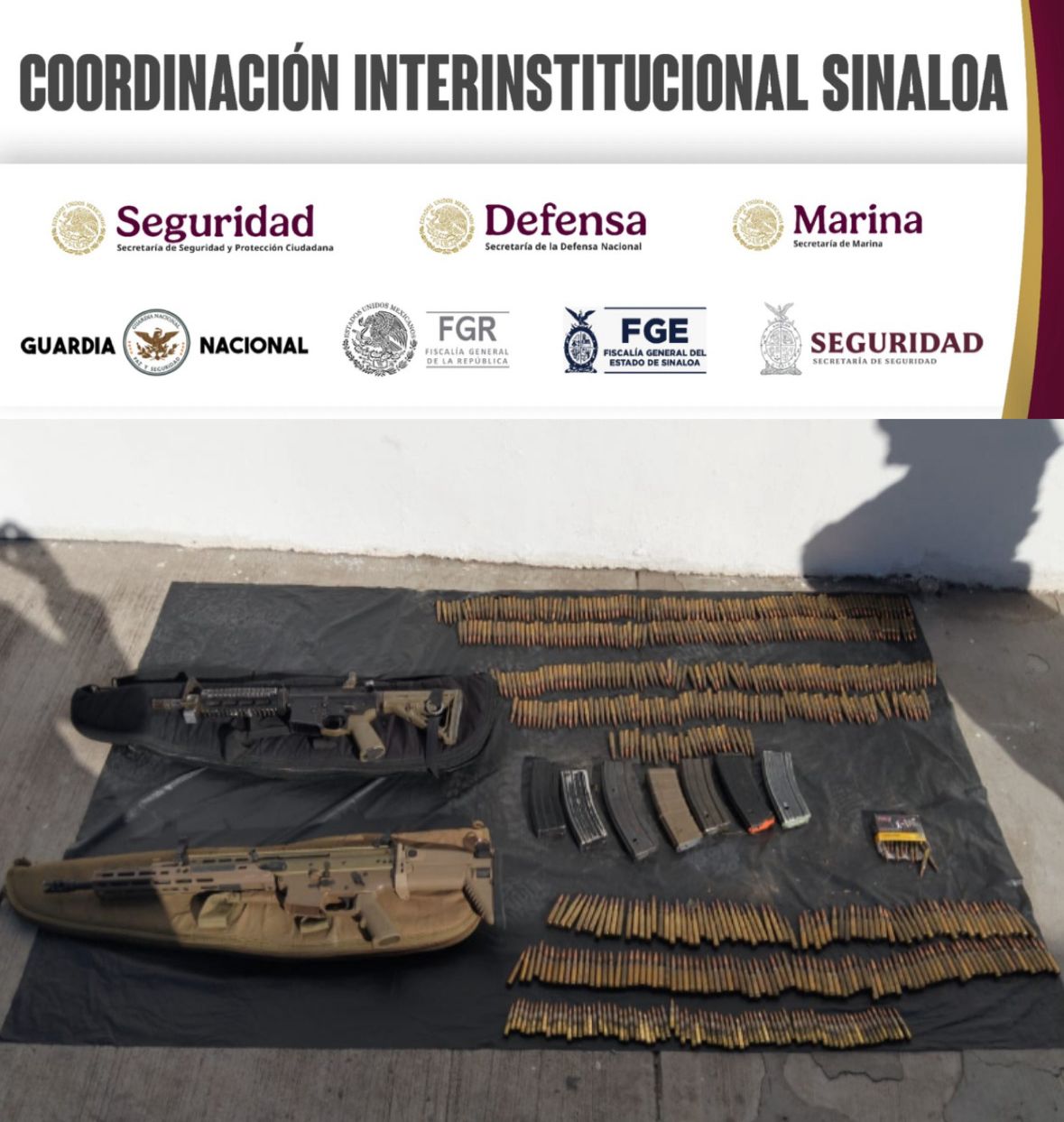 Culiacán, Sinaloa (Ri Noticias)-. Elementos del Grupo Interinstitucional aseguraron dos armas largas, 988 cartuchos útiles y siete cargadores en la colonia 5 de Febrero, en la ciudad de Culiacán, como parte de un operativo de reconocimiento.