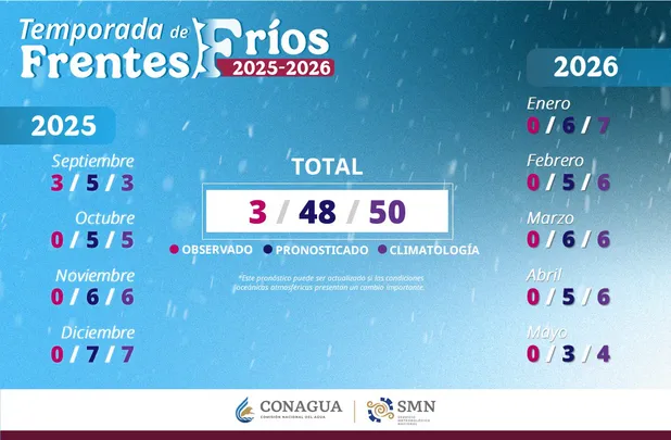 Durante la temporada de 2025 a 2026, el SMN informó que se registran en promedio 58 frentes fríos al año. Dependiendo de la región que atraviesen, estos sistemas reciben nombres específicos y provocan efectos distintos.