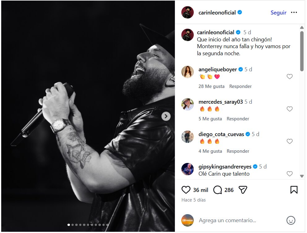 Aunque recientemente se supo que Carín León tuvo que posponer conciertos por un diagnóstico de dengue, su enfoque está en recuperarse y continuar con su agenda artística, que promete seguir creciendo durante 2026.