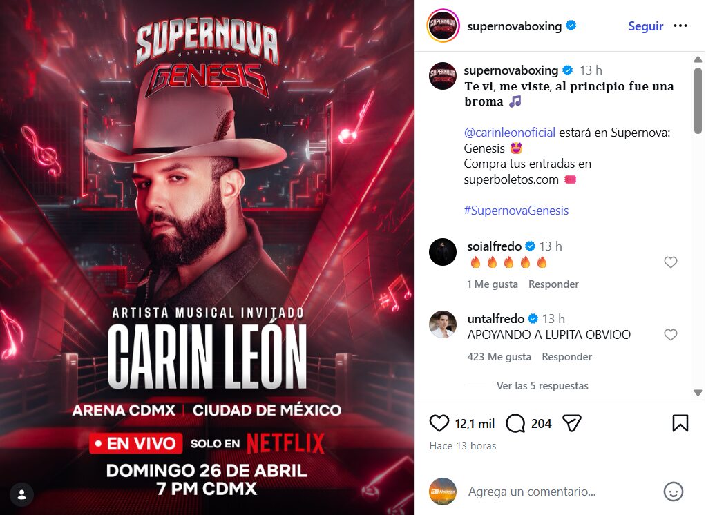 La confirmación de artistas como Carín León en un evento como Supernova: Genesis 2026 responde a una tendencia de fusionar música y entretenimiento digital en experiencias en vivo. Eventos como este buscan atraer no solo a fanáticos del boxeo espectáculos, sino también a amantes de la cultura pop y seguidores de los artistas invitados.