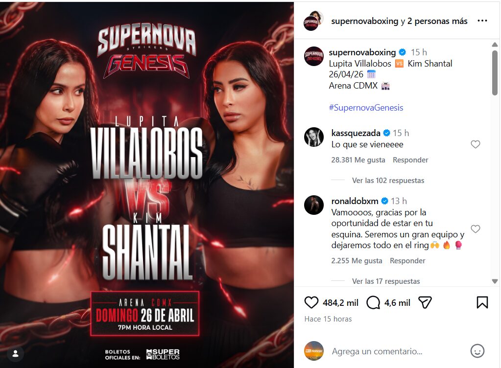 Dentro de la cartelera, un combate que ha generado expectativa es el duelo entre Lupita Villalobos y Kim Shantal, anunciado oficialmente por los organizadores de Supernova.