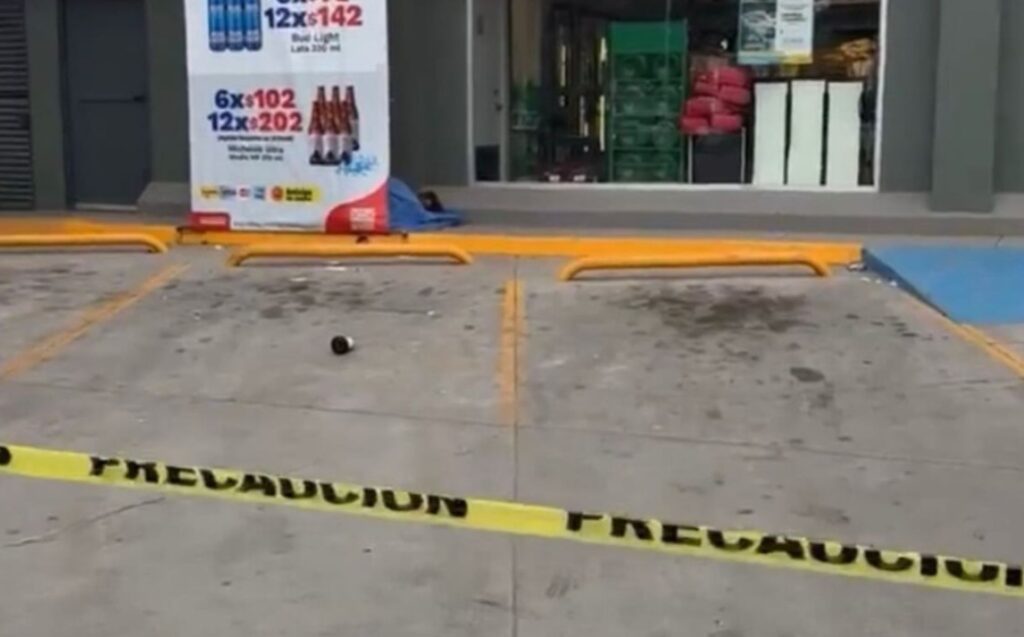 El cuerpo quedó tendido en el estacionamiento del comercio junto a una caja de cigarros y otros objetos y a simple vista se le apreciaban heridas de bala en la cabeza, tórax y abdomen.