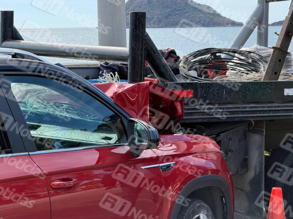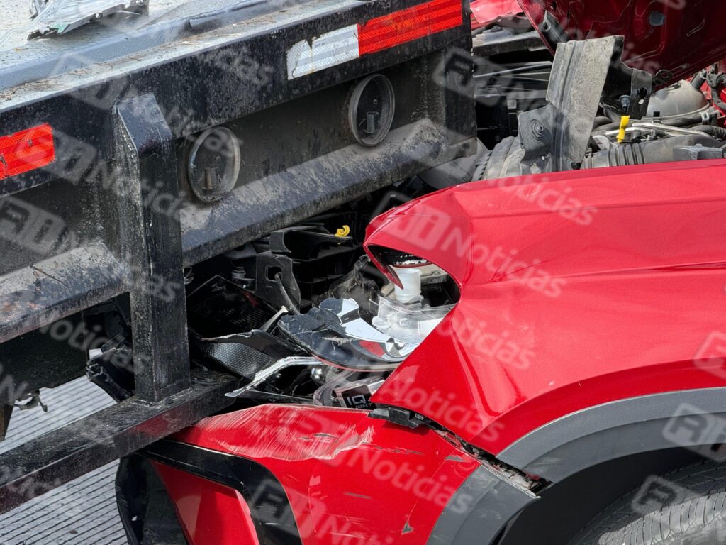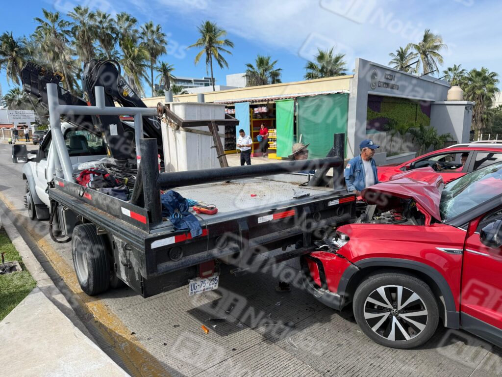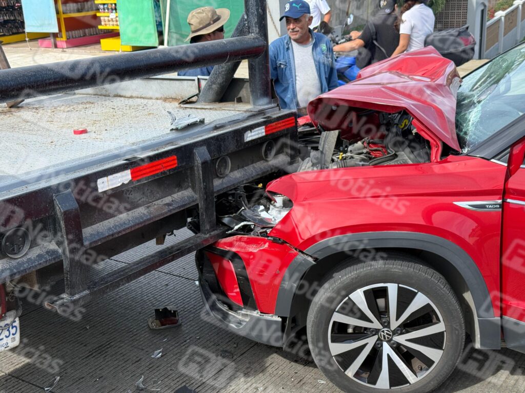 En el percance se vieron involucradas una camioneta Volkswagen modelo Taos color rojo, y una grúa perteneciente al área de C4, utilizada para la instalación de videocámaras de vigilancia.