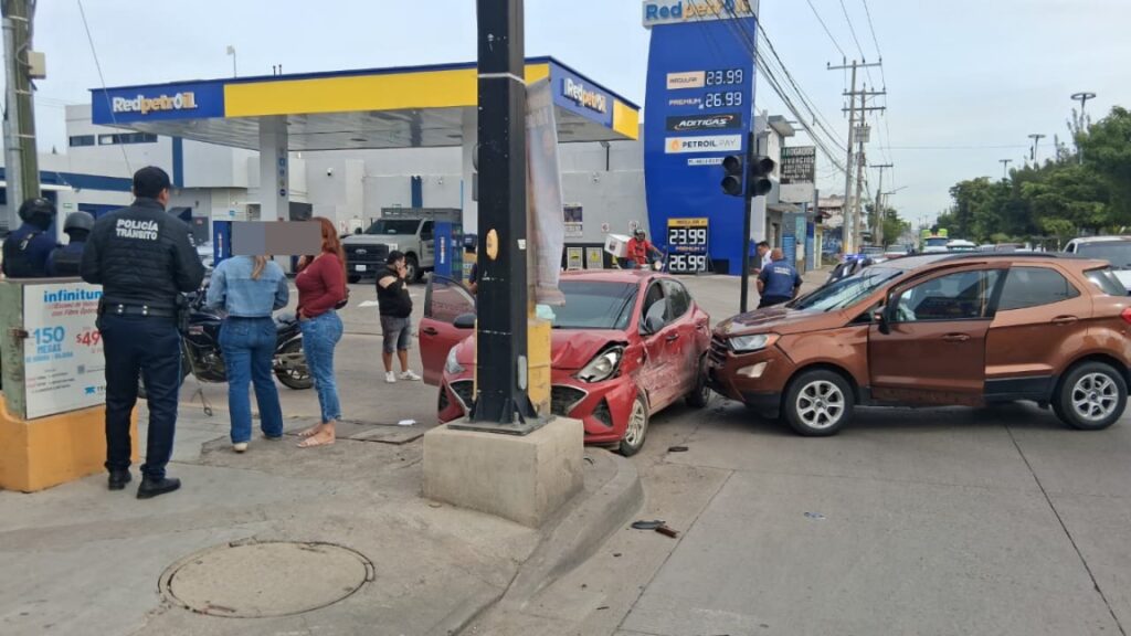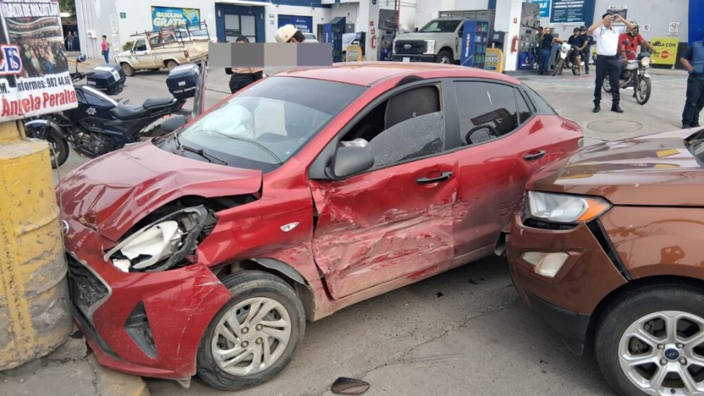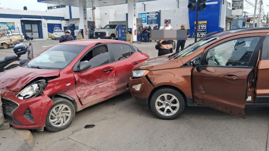 El incidente ocurrió cuando el automóvil compacto circulaba hacia el sur por la avenida Gabriel Leyva y al llegar al semáforo fue impactada en el costado del lado del conductor por la camioneta SUV proyectando la unidad hacia un poste de una gasolinera.