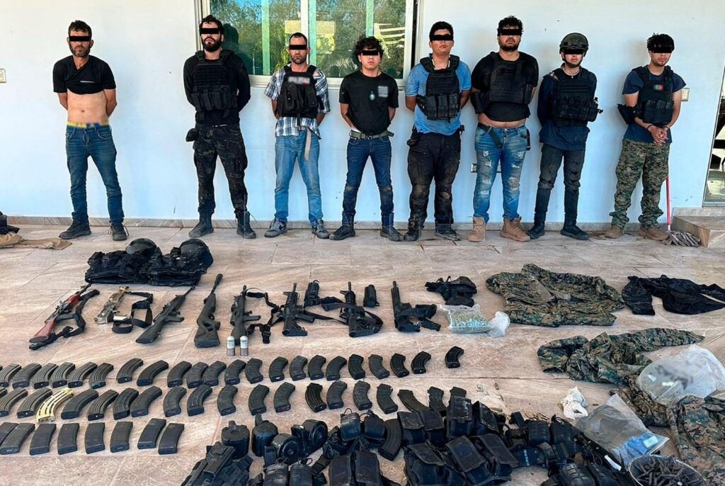 En la evidencia visual compartida se observa a ocho de los detenidos portando equipo táctico, chalecos balísticos y prendas de camuflaje, alineados frente al arsenal de alto poder que les fue incautado. Llama la atención que, aunque el reporte oficial del secretario de Seguridad, Omar García Harfuch, indica un total de nueve arrestados, en la fotografía solo se muestran ocho personas, sin que hasta ahora se aclare la ubicación del último detenido.
