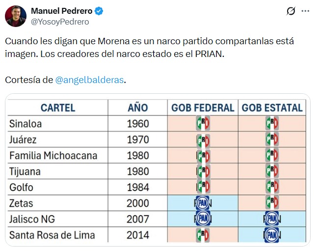 Tras la difusión del video, las reacciones en redes sociales no se hicieron esperar. Decenas de usuarios cuestionaron sus declaraciones y rechazaron el calificativo dirigido a Morena. Entre los mensajes predominó la narrativa de que los verdaderos responsables del crecimiento del narcotráfico fueron los gobiernos del PRI y el PAN, agrupados bajo el término PRIAN.
