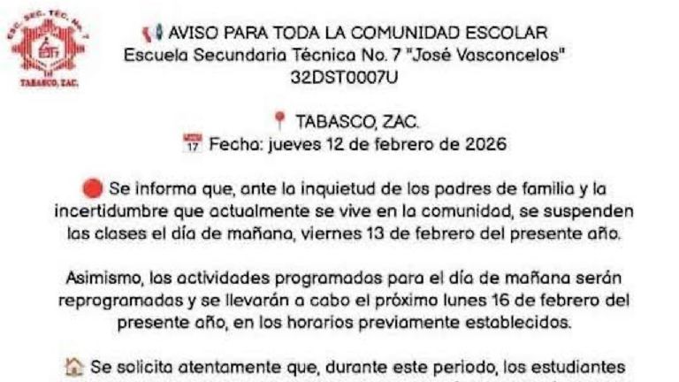 Como medida preventiva ante el riesgo de nuevos actos violentos, diversas instituciones educativas de los municipios de Jalpa y Tabasco suspendieron clases. Las autoridades de seguridad reforzaron la presencia militar y policial en la región, e implementaron el protocolo antibloqueo para proteger las vías de comunicación y prevenir agresiones adicionales.