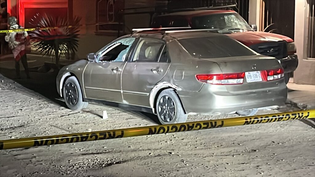 Al arribar al sitio, elementos de seguridad localizaron tres vehículos con impactos de bala, entre ellos una camioneta Ford Ranger roja y un automóvil Honda Accord color dorado.