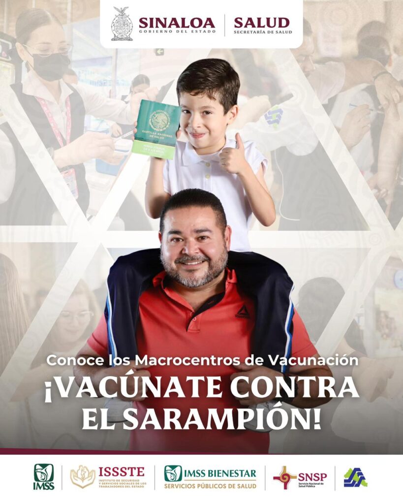 Culiacán, Sin.- La Secretaría de Salud informa a la población que, con el objetivo de fortalecer la protección contra el sarampión, se instalarán macrocentros de vacunación en distintos municipios del estado durante esta semana.