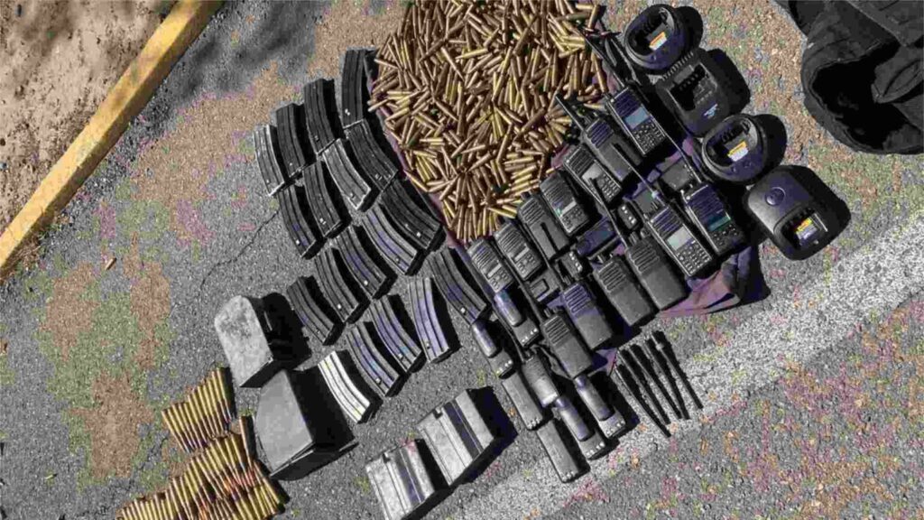 El decomiso se realizó durante recorridos disuasivos apoyados con aeronaves y unidades terrestres, donde el personal naval localizó cuatro fusiles de distintos calibres, más de 3 mil 700 cartuchos, 19 cargadores y 14 radios de comunicación.