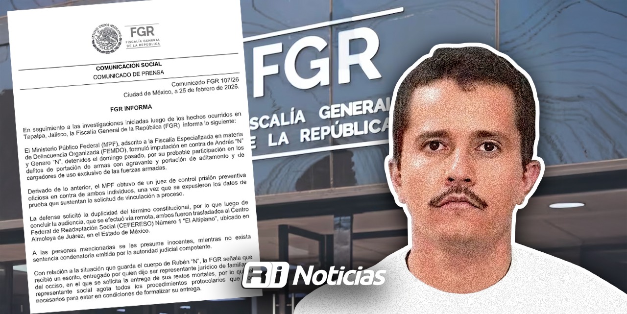 CDMX. (RI Noticias).- La Fiscalía General de la República, mediante un comunicado dio a conocer la situación que guarda el cuerpo de Nemesio Rubén Oseguera Cervantes, alias el Mencho, la FGR señaló que recibió un escrito entregado por quien se ostenta como representante jurídico de familiares del occiso en el que se solicita la entrega de sus restos mortales, por lo que la representación social agota todos los procedimientos protocolares que son necesarios para estar en condiciones de formalizar su entrega.