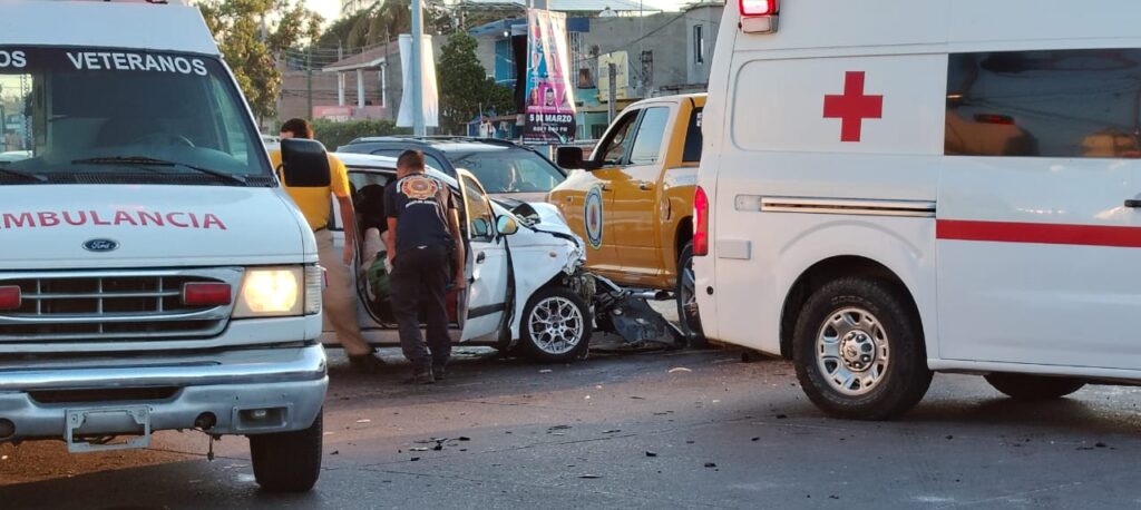 Al sitio del siniestro acudieron en primera instancia elementos de Bomberos Veteranos para asegurar el perímetro, seguidos por paramédicos de la Cruz Roja quienes brindaron atención médica a los tres lesionados. De acuerdo con la valoración preliminar, los afectados no presentan heridas de gravedad, aunque fueron atendidos en el lugar para descartar cualquier complicación de salud derivada del fuerte golpe.