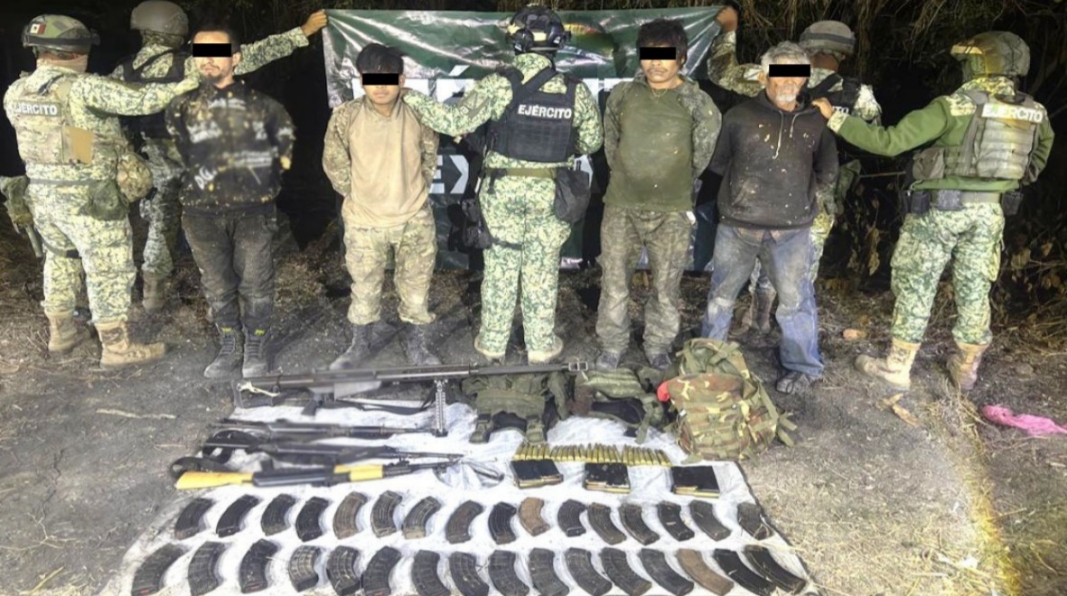 Escuinapa, Sin (RI Noticias).- Personal del Ejército Mexicano detuvo a cuatro hombres y liberaron a una persona privada de la libertad y aseguraron armamento y equipo táctico en un operativo realizado en la comunidad de Tecualilla en el municipio de Escuinapa.