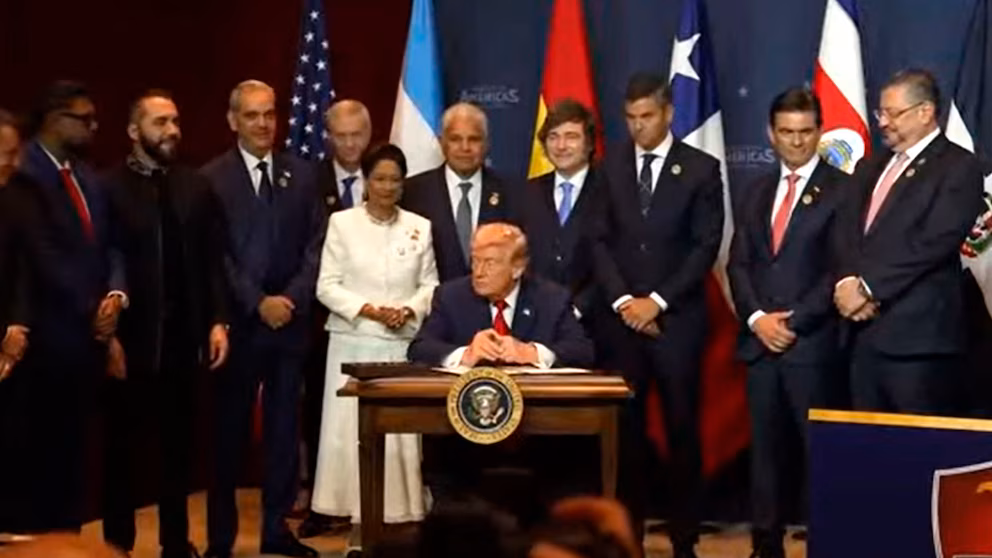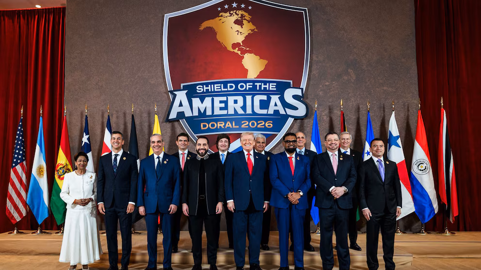 Donald Trump anunció este sábado en Miami la creación de Escudo de las Américas, una alianza geopolítica integrada por doce mandatarios de la región que apuntará contra el narcoterrorismo y la ofensiva comercial de China.