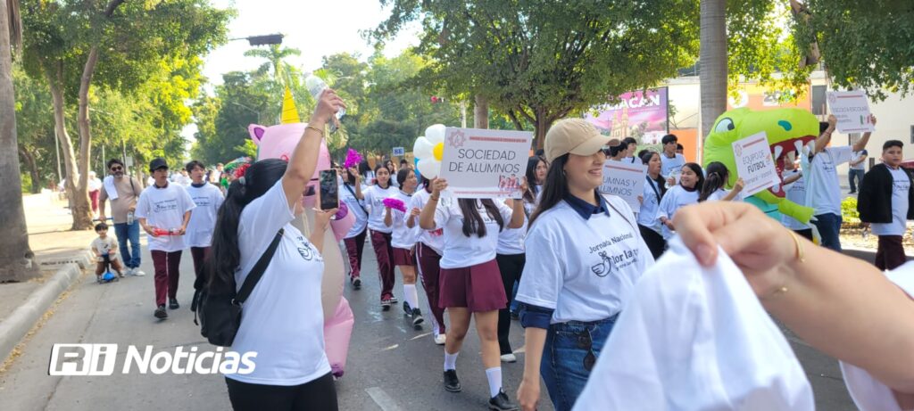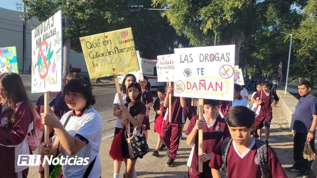 Culiacán, Sin ( RI Noticias).- Con el objetivo principal de sensibilizar a las y los jóvenes sobre los riesgos del consumo de drogas, además de fortalecer valores y fomentar la toma de decisiones responsables este sábado cerca de 3 mil estudiantes se unieron a la marcha de la Jornada Nacional por la Paz y contra las Adicciones 2026.