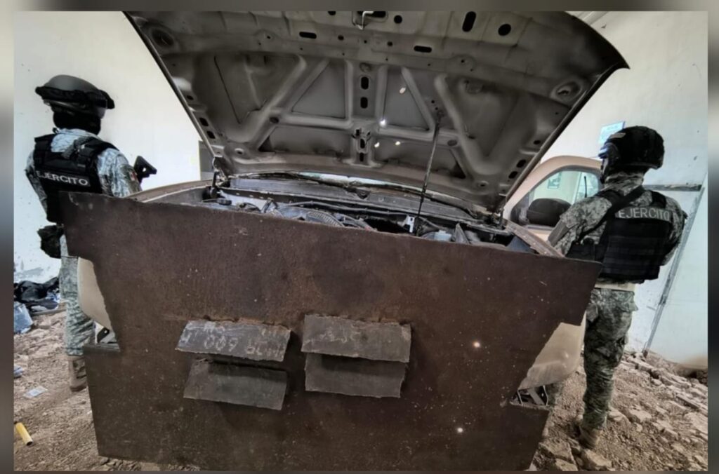 En un segundo hecho, el personal militar realizaba recorridos de seguridad en el poblado Buenavista del mismo municipio, cuando localizaron un vehículo con blindaje artesanal, por lo que procedieron a su aseguramiento.