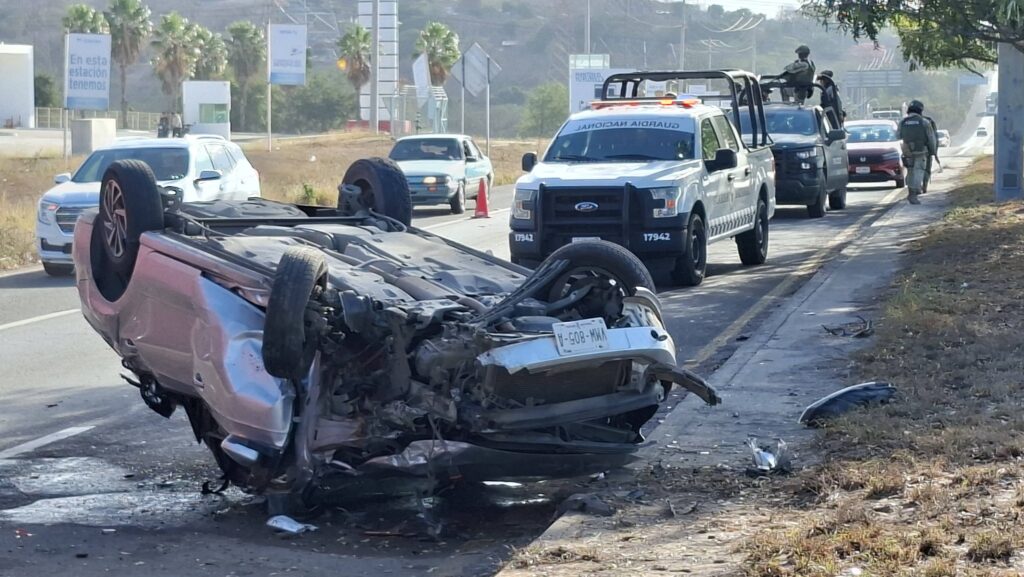 Mazatlán, Sin (RI Noticias).- Un aparatoso accidente ocurrió esta mañana al registrarse una volcadura de un vehículo cuando circulaba por la carretera internacional México 15 donde una persdona resultó lesionada y hubo cuantiosos daños materiales.