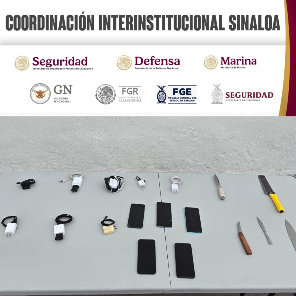 Culiacán, Sin (RI Noticias).- Elementos de la Secretaría de Seguridad Pública de Sinaloa, a través del Grupo de Operaciones Especiales Sinaloa (GOES) de la Policía Estatal Preventiva, en coordinación con el Ejército Mexicano, la Guardia Nacional, la Secretaría de Marina, la Secretaría de Seguridad y Protección Ciudadana, la Fiscalía General de la República y la Fiscalía General del Estado, implementaron una revisión en el Centro Penitenciario Aguaruto este viernes 13 de marzo, donde se aseguraron teléfonos, cargadores y puntas.