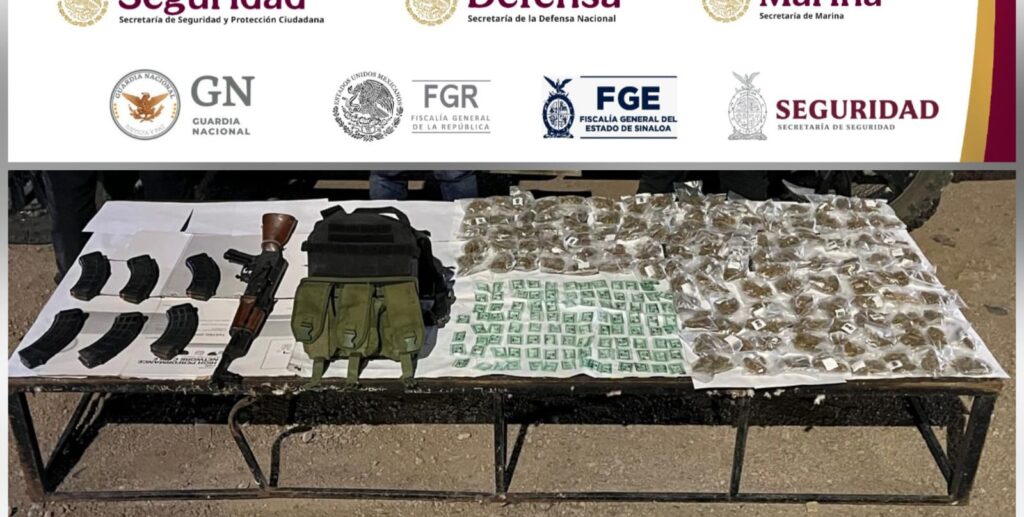 Las autoridades le aseguraron diversas dosis de drogas, cartuchos y equipo táctico