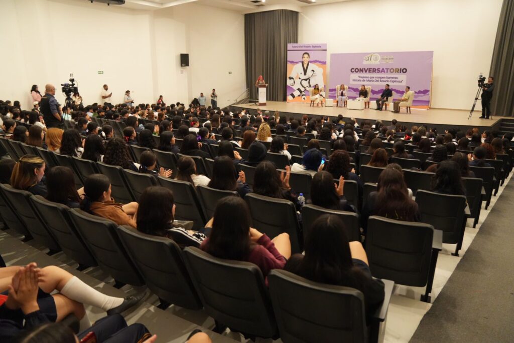 El evento fue encabezado por la presidenta de la Junta de Coordinación Política del Congreso del Estado,Tere Guerra Ochoa, quien dio la bienvenida y destacó la importancia de acercar a las juventudes historias de éxito que inspiran. En su mensaje, subrayó que Chayito Espinoza es un ejemplo vivo de perseverancia y disciplina, al ser la única mujer mexicana con tres medallas olímpicas, logro que la posiciona como referente nacional e internacional.