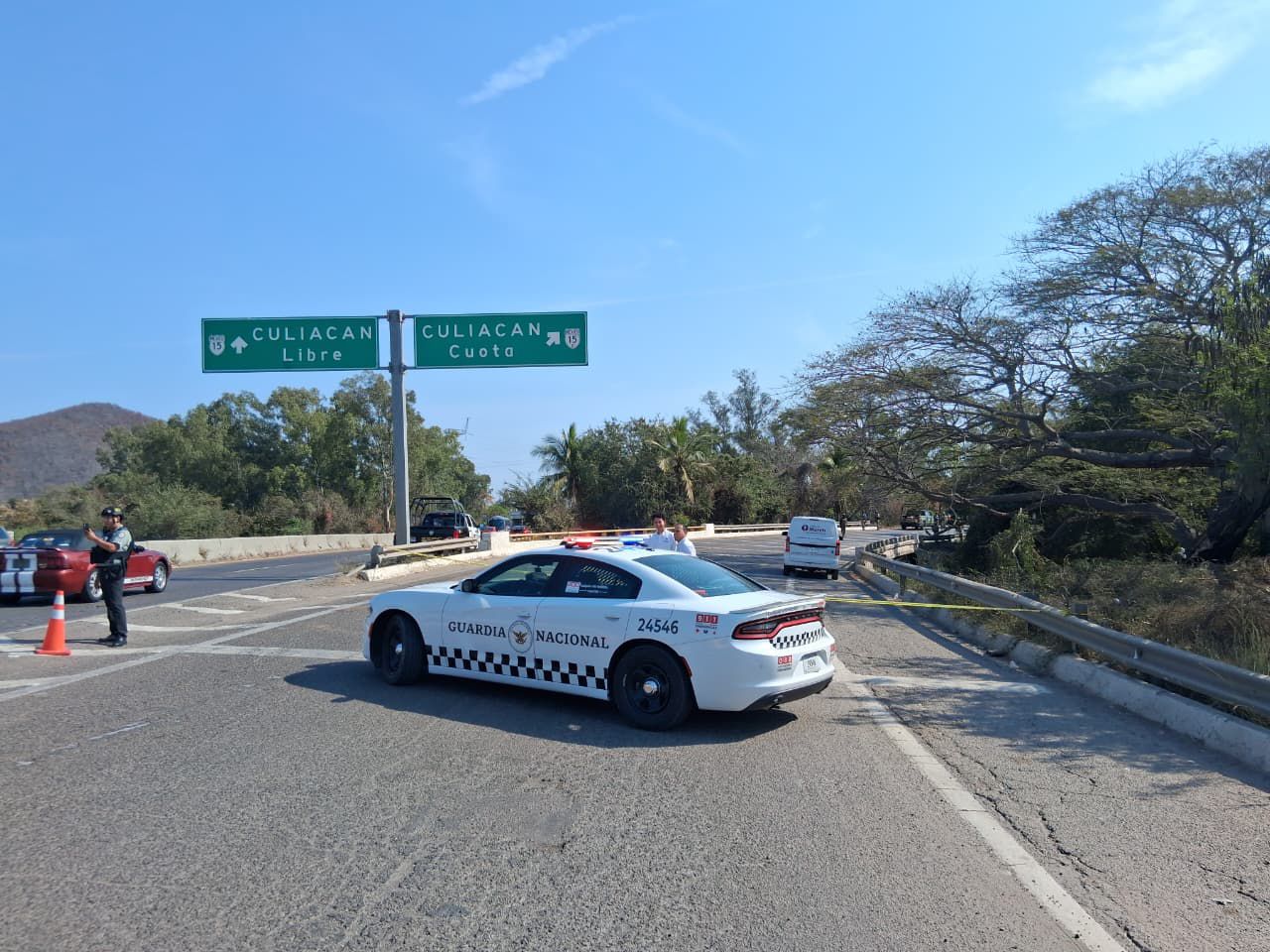 Posteriormente arribaron elementos de la Guardia Nacional División Carreteras, además de personal de la Secretaría de Defensa y la Secretaría de Seguridad y Protección Ciudadana, quienes se encargaron de cerrar la circulación vehícular mientras se realizan las diligencias por parte de personal de la Fiscalía General del Estado.