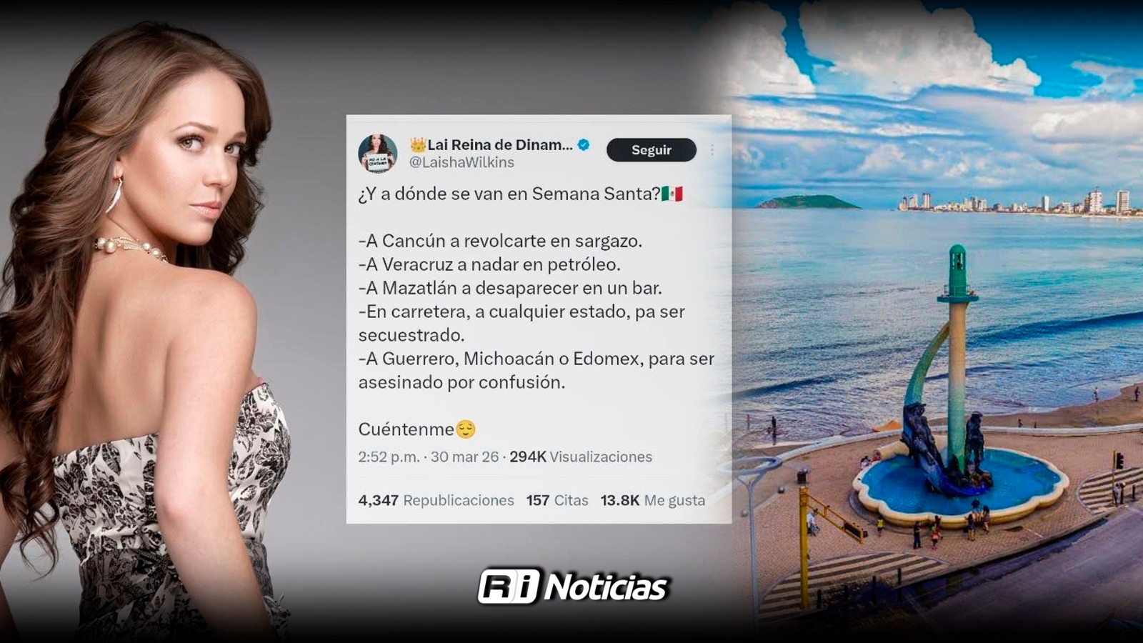 Mazatlán, Sin (RI Noticias). – La actriz mexicana Laisha Wilkins se volvió tendencia en redes sociales luego de publicar un comentario que relacionaba destinos turísticos con problemas ambientales y de inseguridad.