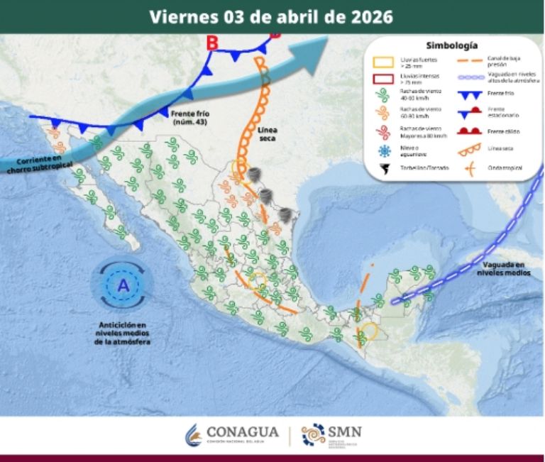 Arrancamos el primer viernes de abril del 2026 ya con altas temperaturas por encima de los 35 grados y hasta más de 40 grados en varios estados de la República Mexicana, dando paso a la primera ola de calor, de acuerdo con el pronóstico extendido del Servicio Meteorológico Nacional (SMN) de la Conagua.
