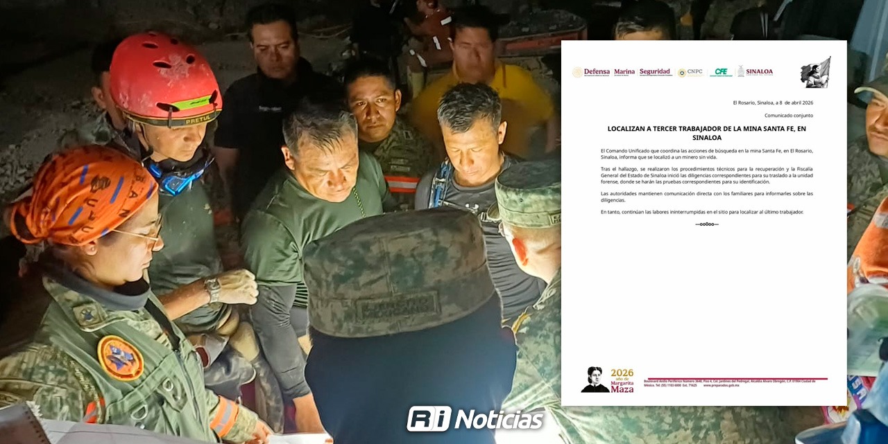 Rosario, Sin (RI Noticias). El tercer trabajador de la mina Santa Fe, en el municipio de El Rosario, fue localizado sin vida, informaron autoridades del Comando Unificado que encabeza las labores de búsqueda.
