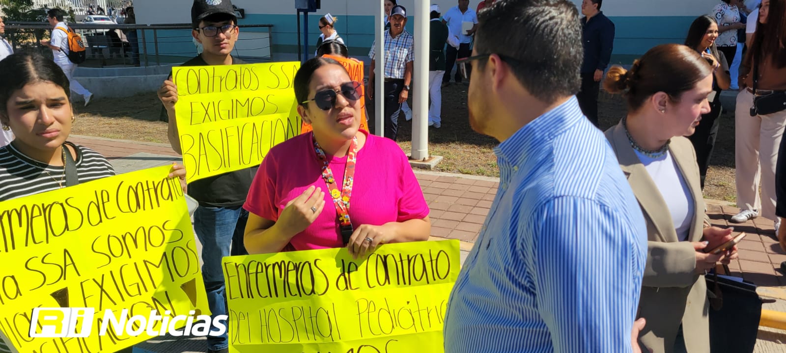 Culiacán, Sin (RI Noticias).- Trabajadores del Hospital Pediátrico de Sinaloa, principalmente del área de enfermería, se manifestaron de manera pacífica afuera del auditorio del Hospital General de Culiacán para exigir la basificación, homologación de salarios y acceso a prestaciones laborales.