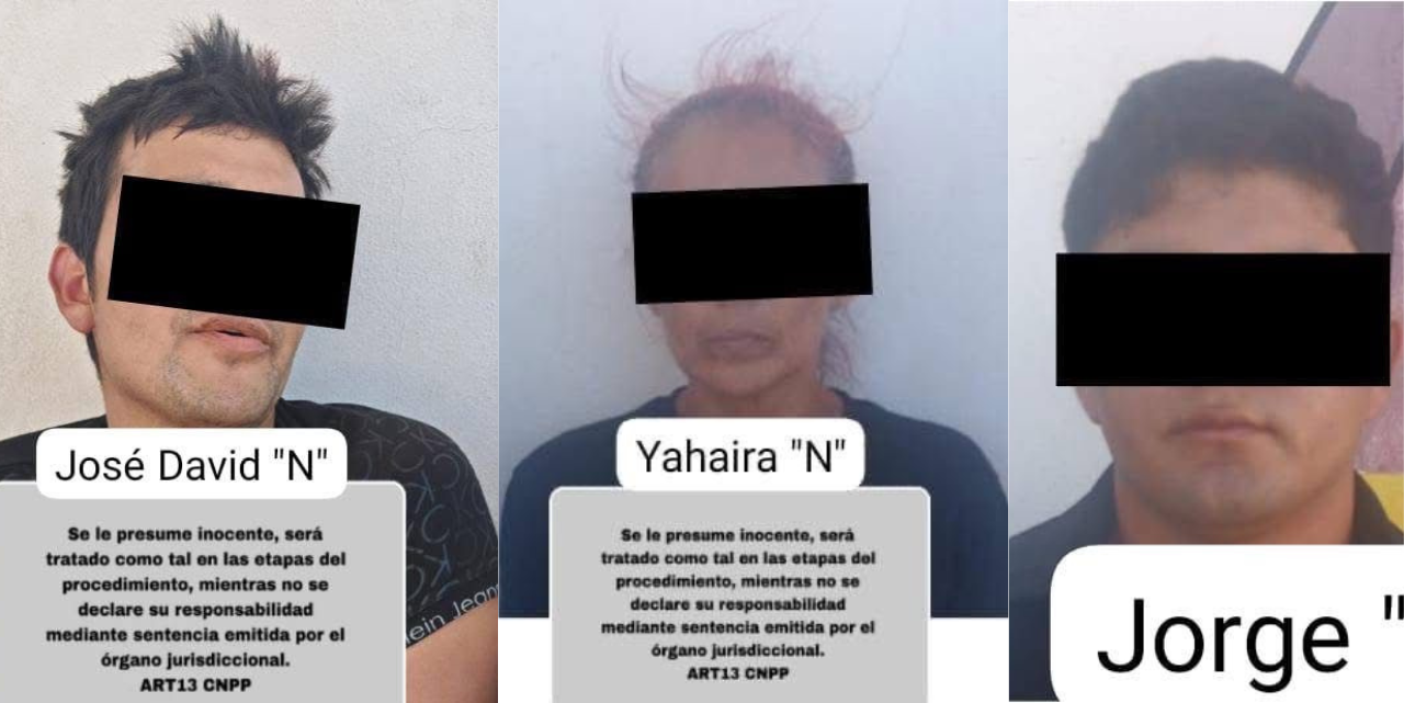 Durante la intervención, fueron asegurados Jorge Alejandro “N”, de 20 años; Yahaira Berenice “N”, de 38; Jesús Alan “N” y José Manuel “N”, ambos de 15 años; así como José David “N”, de 29 años de edad.