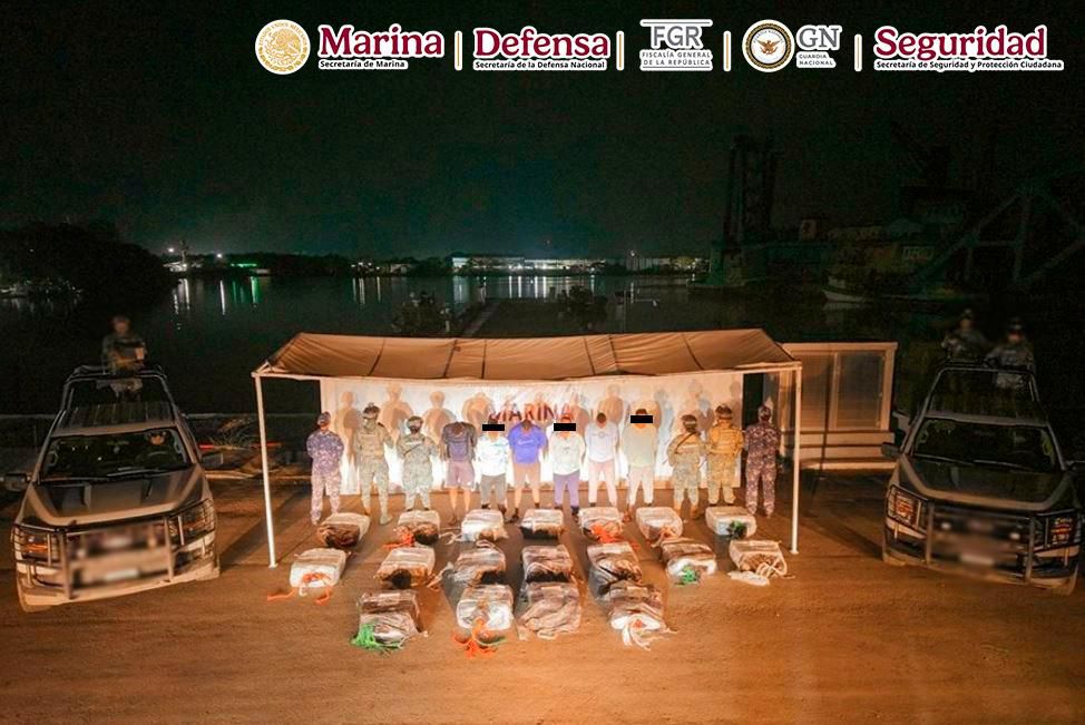 La acción fue encabezada por la Secretaría de Marina (Semar), a través de la Armada de México en funciones de Guardia Costera, en coordinación con la Fiscalía General de la República (FGR) y la Secretaría de Seguridad y Protección Ciudadana (SSPC).