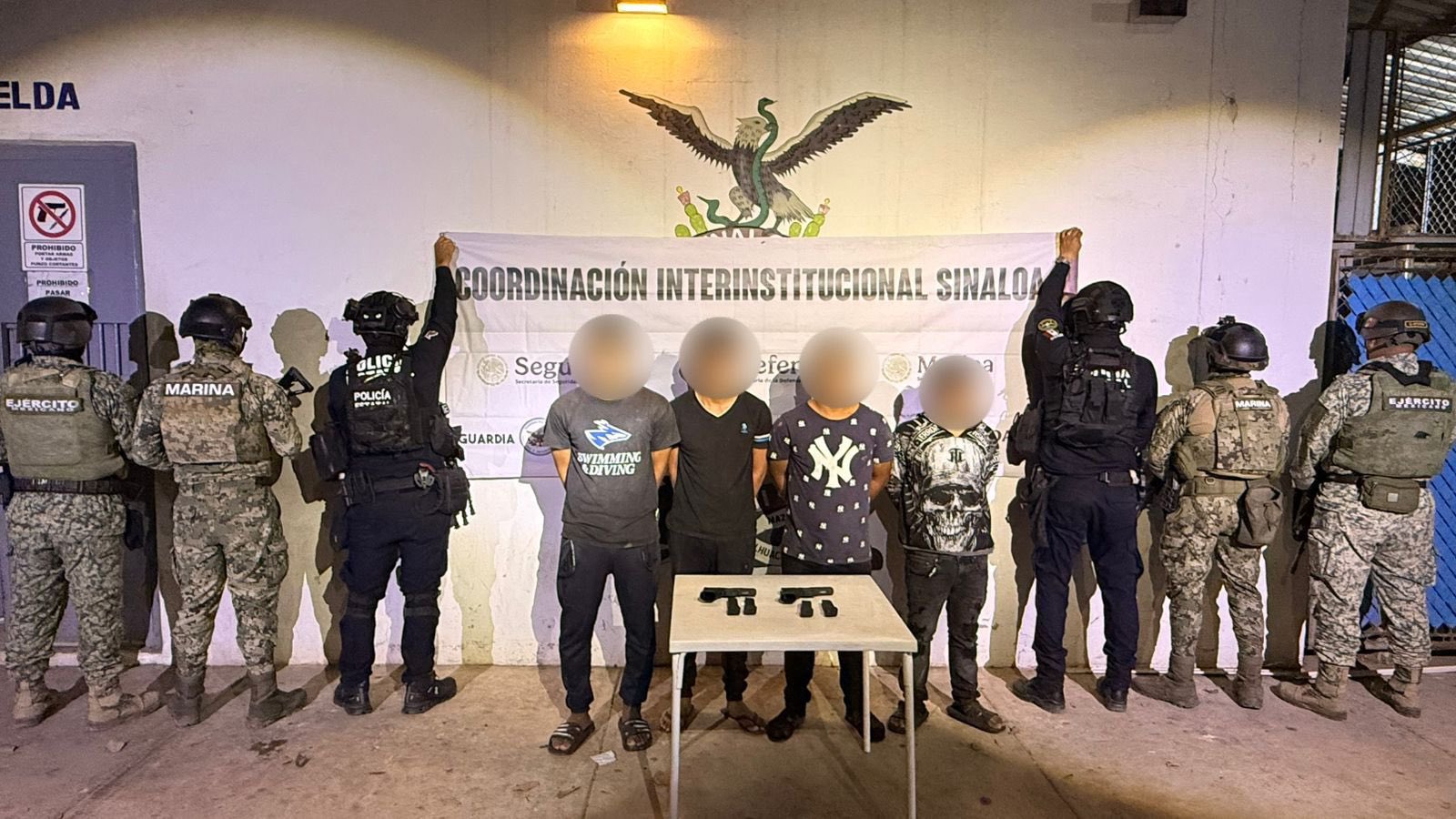 Mazatlán, Sin (RI Noticias).- Personal del Ejército Mexicano y elementos de la Secretaría de Seguridad Pública del Estado, a través del Grupo de Operaciones Especiales de Sinaloa (GOES) de la Policía Estatal Preventiva, en coordinación con la Guardia Nacional, la Secretaría de Marina, la Secretaría de Seguridad y Protección Ciudadana, la Fiscalía General de la República y la Fiscalía General del Estado, llevaron a cabo la detención de cuatro personas, a quienes se les aseguraron armas cortas en el municipio de Mazatlán.